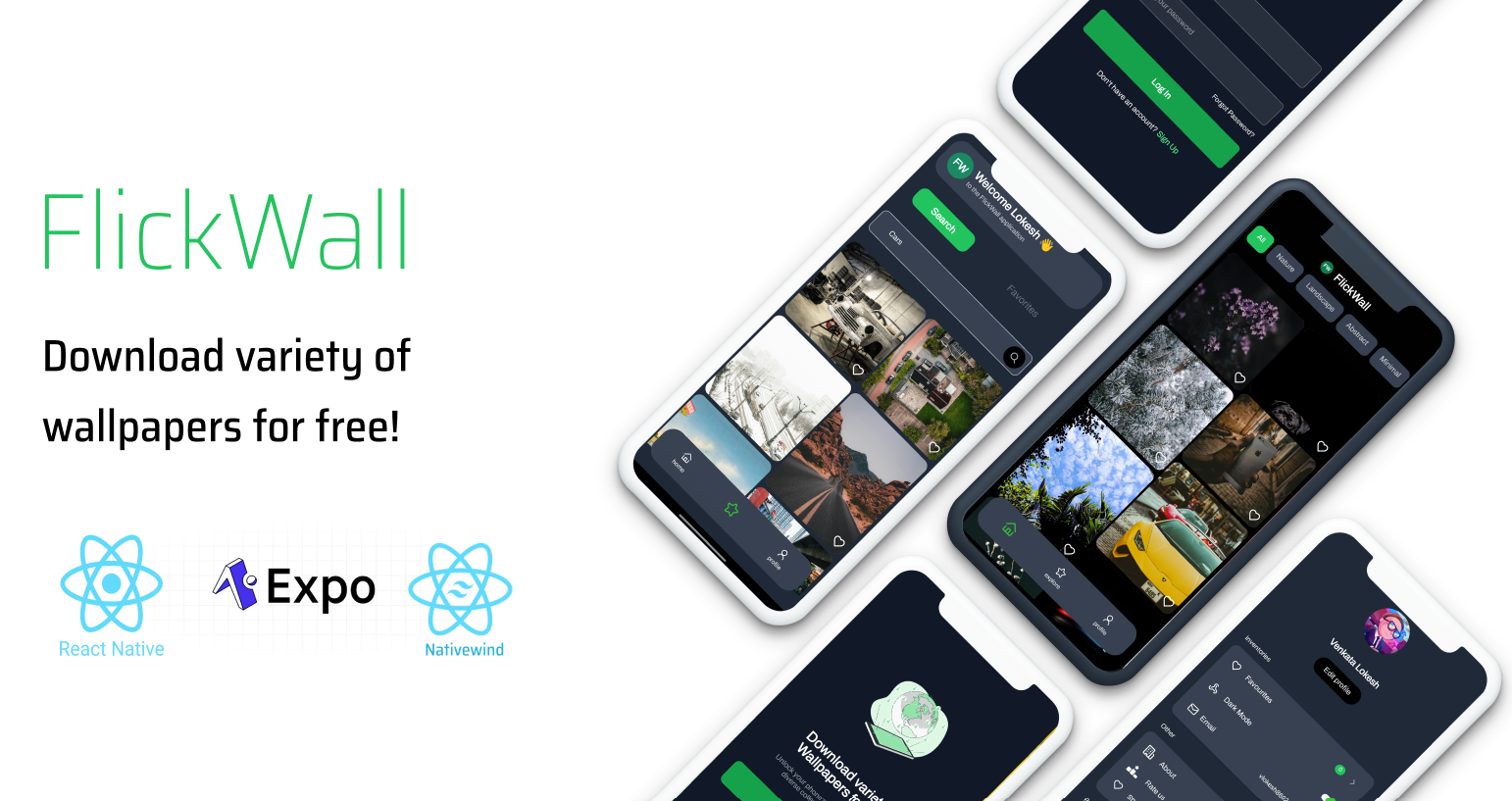 FlickWall is a mobile application developed using React Native and Expo, designed to provide a seamless image browsing and sharing experience. The app leverages the Unsplash API to fetch high-quality images, utilizes PostgreSQL with Prisma for robust data storage and management, and implements secure authentication mechanisms.